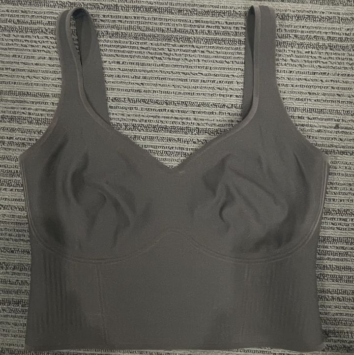 The bra tank boasts impressive stretch recovery, enduring shape retention through repeated washes, and contouring to provide a flattering fit.