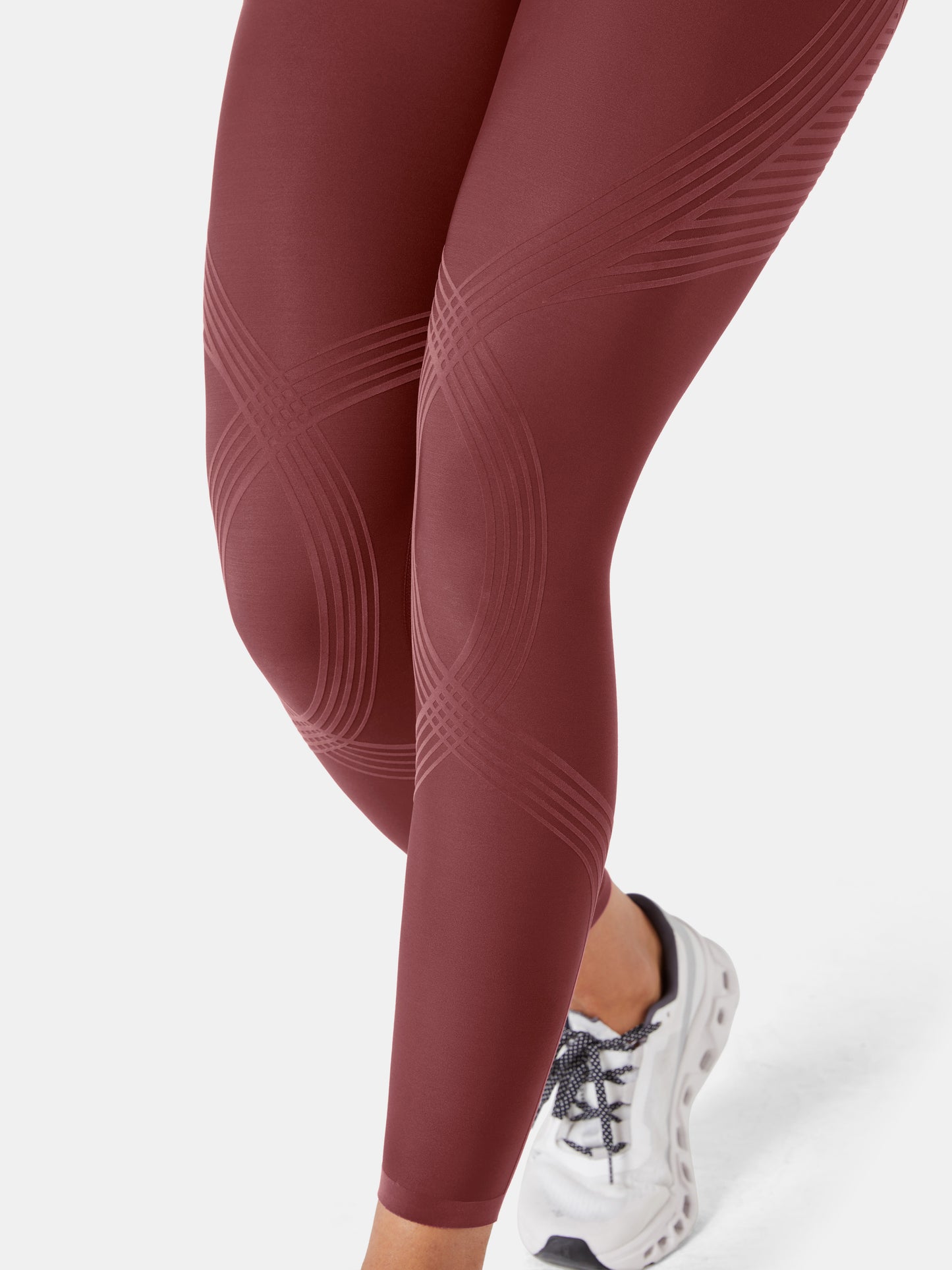 The 4-way stretch fabric provides an 85-95% recovery rate compared to 65-75% standard leggings fabrics.